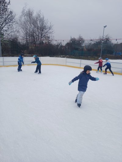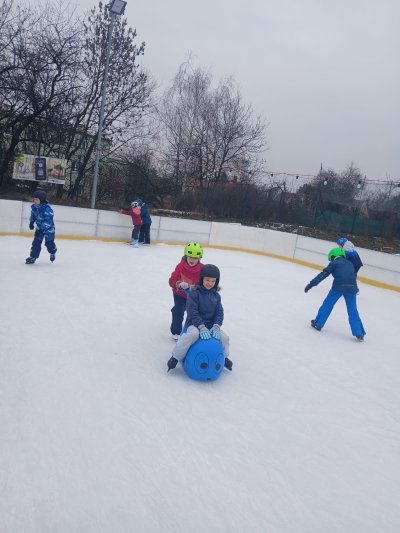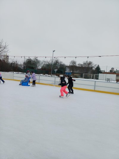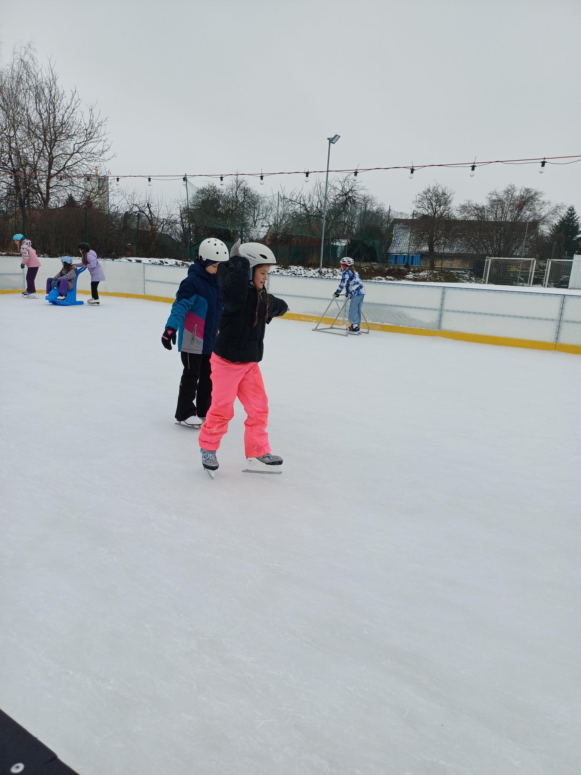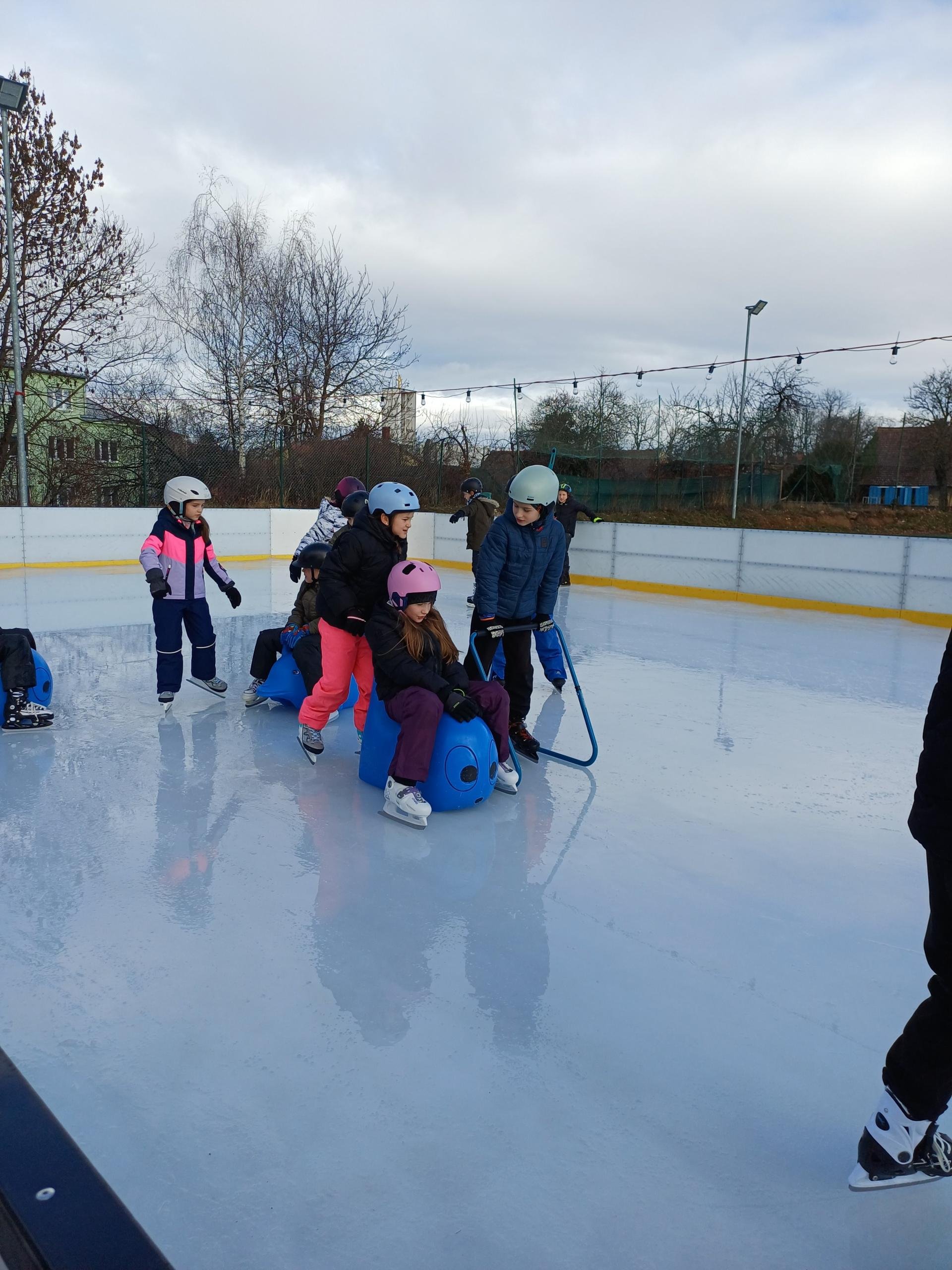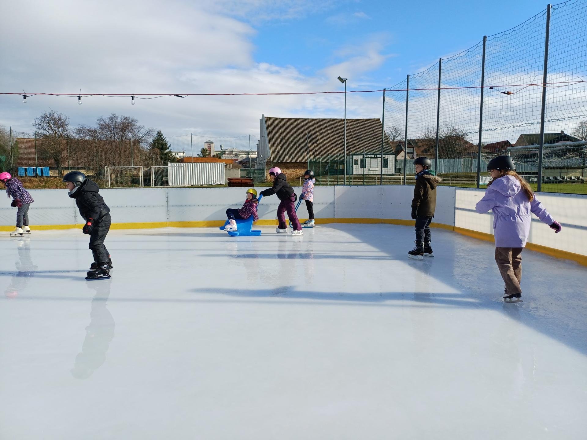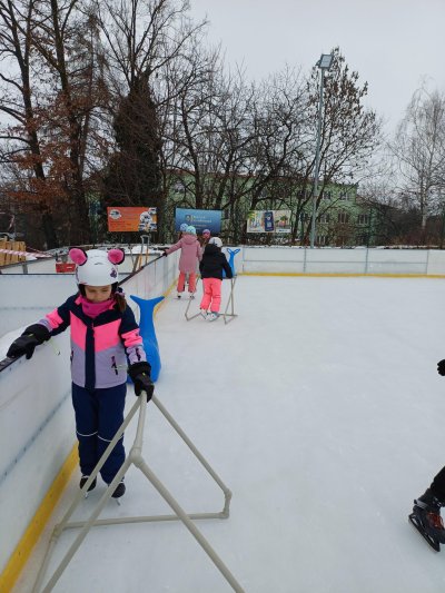Naše školní družina se letos vydala několikrát na bruslení na fotbalovém hřišti Spartak. Každá návštěva ledové plochy byla jiná. Počasí se dětem pokaždé postaralo o jiné podmínky. Zažily opravdovou zimu, kdy je mráz štípal do tváří, ale také den, kdy poprchávalo. Jednou je dokonce překvapilo sluníčko, kdy ledové plocha roztávala a děti se mohly téměř koupat.