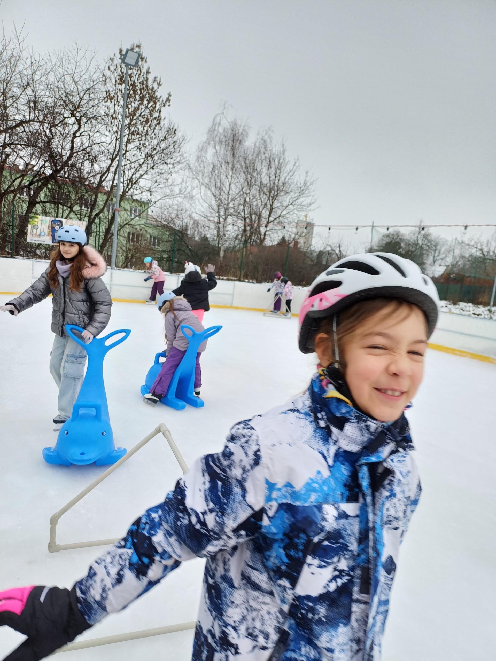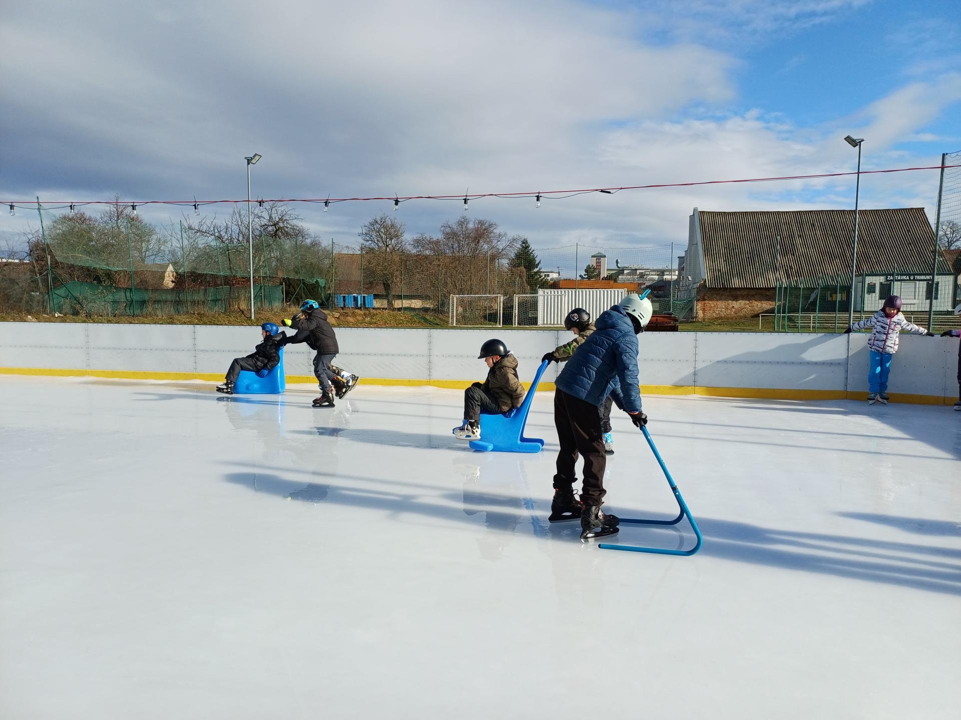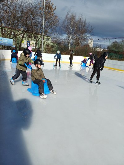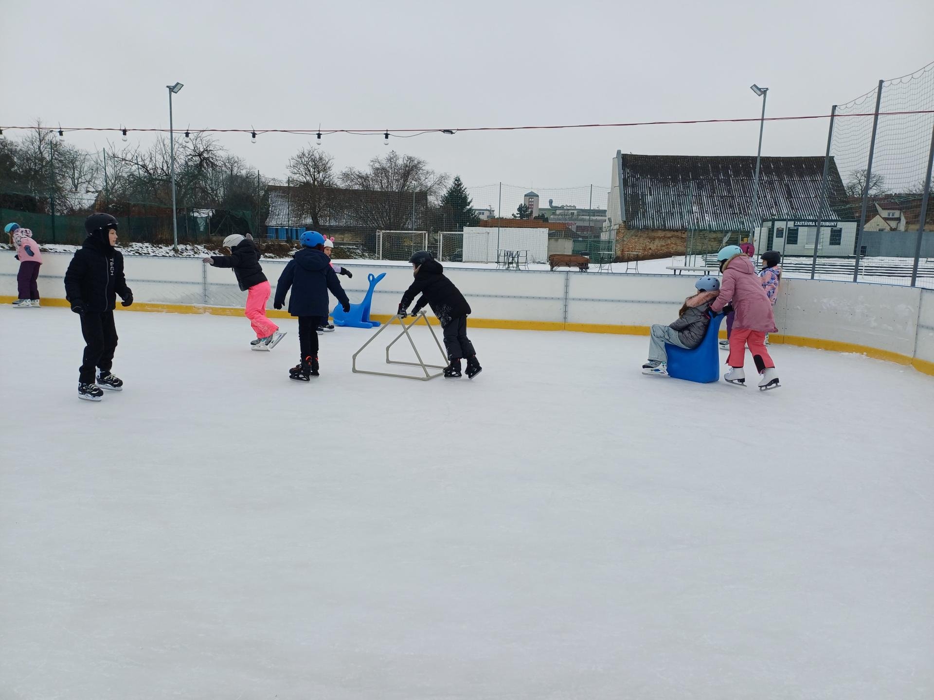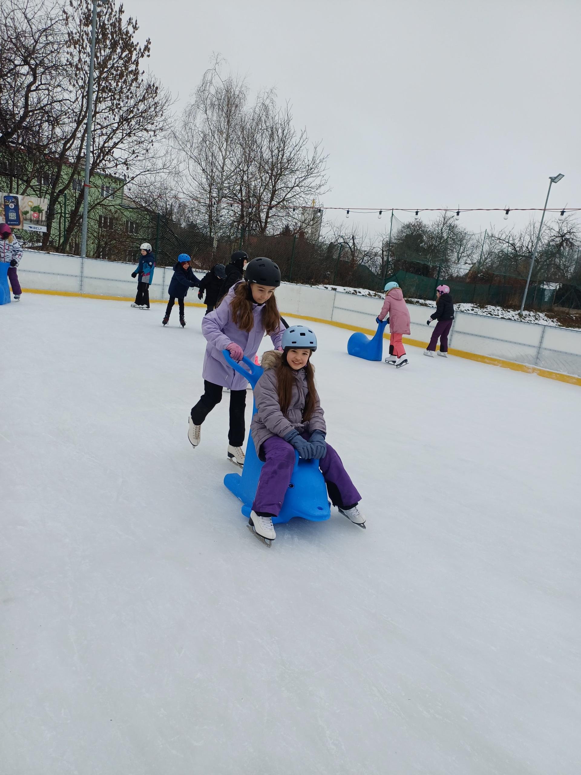 Naše školní družina se letos vydala několikrát na bruslení na fotbalovém hřišti Spartak. Každá návštěva ledové plochy byla jiná. Počasí se dětem pokaždé postaralo o jiné podmínky. Zažily opravdovou zimu, kdy je mráz štípal do tváří, ale také den, kdy poprchávalo. Jednou je dokonce překvapilo sluníčko, kdy ledové plocha roztávala a děti se mohly téměř koupat.
