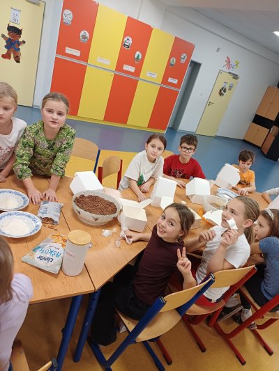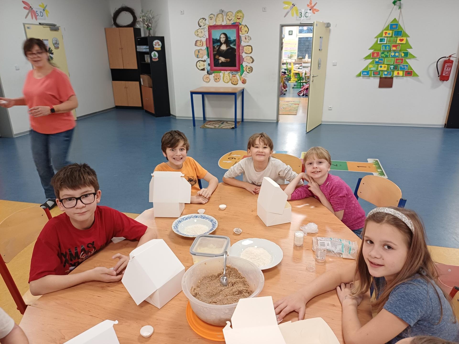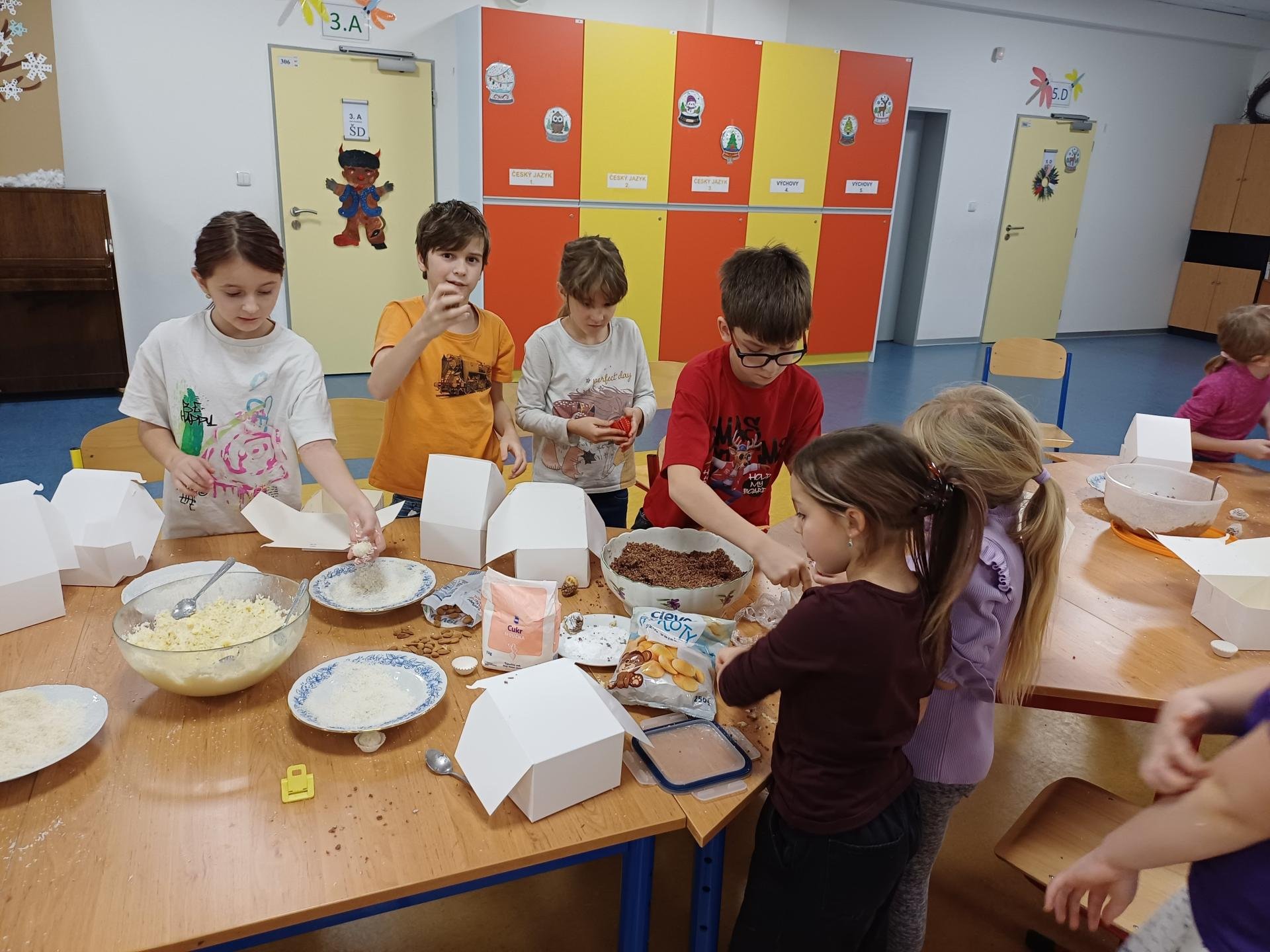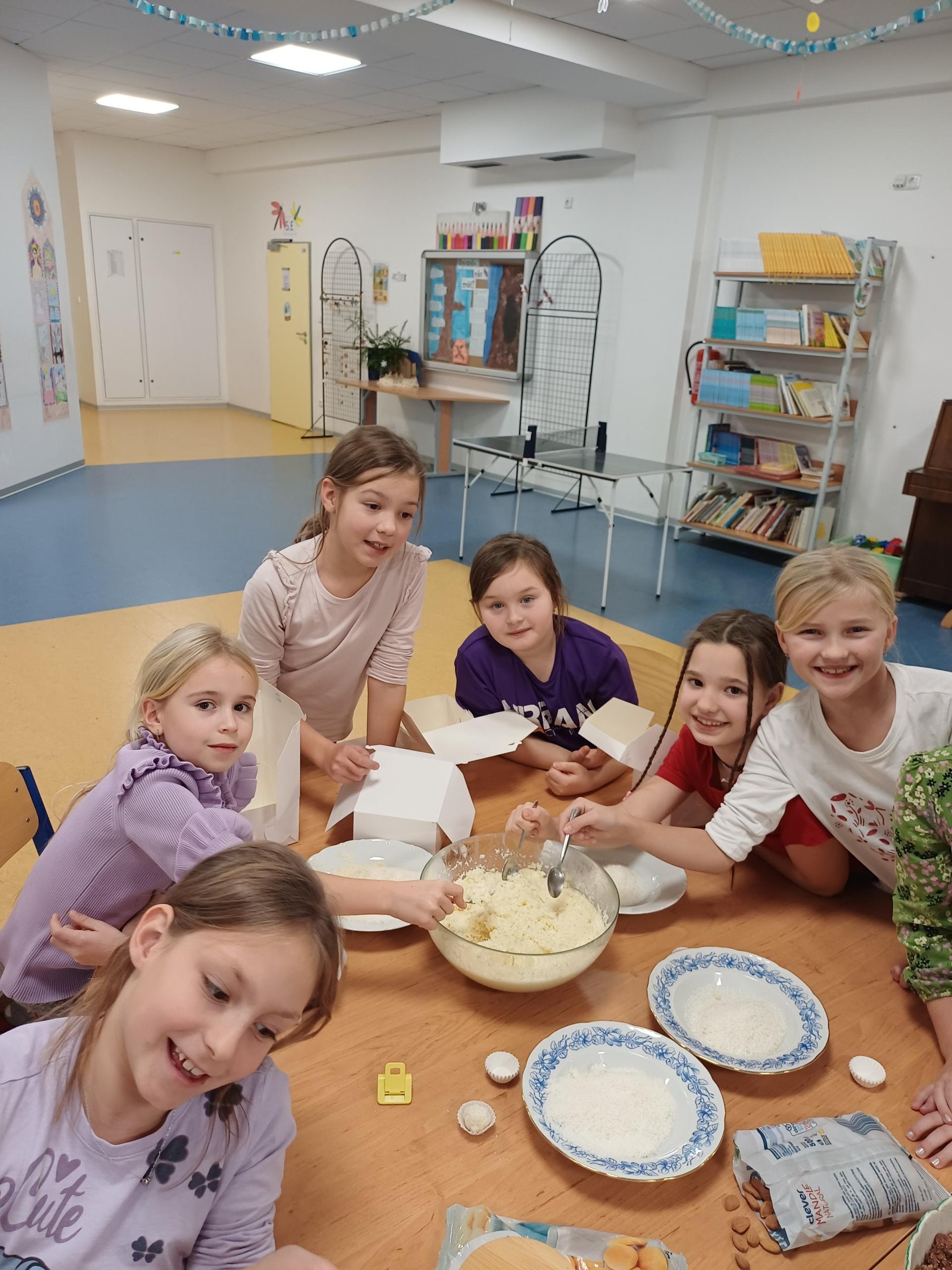 Předvánoční hodina kroužku vaření se nesla v příjemné sváteční atmosféře. Děti se s nadšením pustily do výroby nepečeného vánočního cukroví. Celou hodinu provoněla vůně kakaa, které si děti s chutí vychutnávaly. V pozadí zněly vánoční písničky, které dotvářely klidnou a radostnou náladu. Společně jsme si užili krásný předvánoční čas plný pohody, smíchu a těšení se na Vánoce.