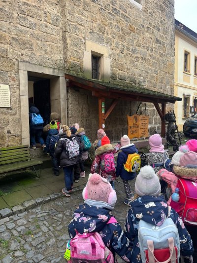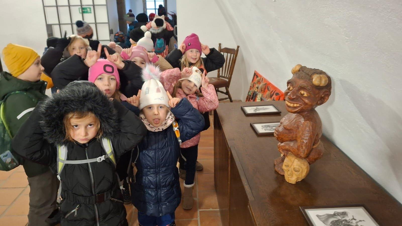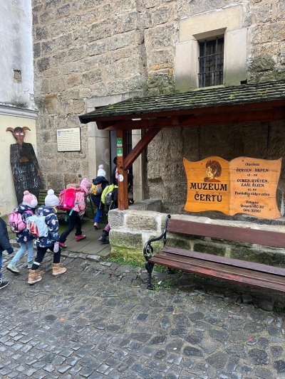 V úterý navštívili naši prvňáčci Muzeum čertů v Úštěku, kde je celou expozicí provázel sám čert. Děti se dozvěděly mnoho zajímavostí o historii čertovského řemesla, prohlédly si různé pekelné předměty a zjistily, proč mají čerti ocasy.