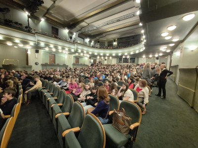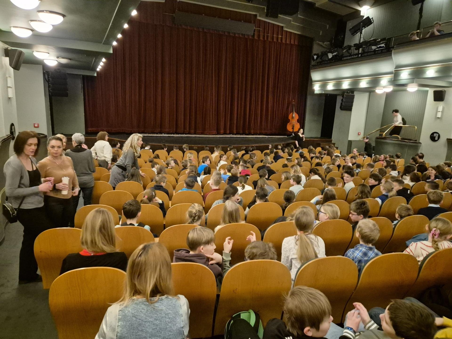 V pondělí 30. března navštívily všechny třídy 4. a 5. ročníku divadelní představení Gulliverovy cesty v Divadle ABC. Oproti předchozím návštěvám menších divadel děti zažily a poznaly, jak to chodí ve velkém divadle. Velké pódium, mnoho kulis, více herců a také více diváků nebo mnoho uvaděček a šatnářek, gongy a přestávka při představení, opona - to vše patří k provozu klasického divadla.