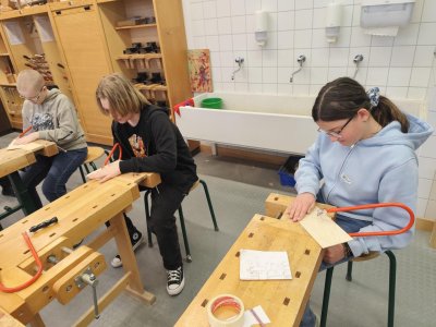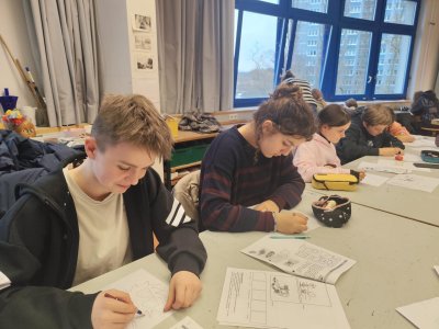 Den jsme zahájili společnou snídaní na hotelu, následoval odjezd tamní MHD do školy. Tam nás vřele přivítali! :-) Seznámili nás s body systémem, což znamená, že každé erasmácké dítě má svého parťáka z tamní školy. Parťák je takový průvodce, který seznamuje našeho školáka se školní budovou, výukovým systémem nebo odpovídá na dotazy. Děti navštívily hodiny dějepisu, občanské výchovy, tělesné výchovy, angličtiny. Část žáků absolvovala také výuku v dřevodílnách, druhá část pak výtvarné výchovy. Následoval oběd a první společné sdílení zážitků z hodin.