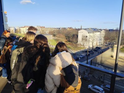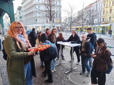 Odjez z holešovického nádraží, příjezd do Berlína, ubytování, večeře v asijské restauraci, zadána jazyková výzva a úkol, který budou žáci plnit po celý týden - v aplikaci bookcreator si povedou svůj deník, zvýší si tak jazykové a digitální kompetence. Nechyběla ani příprava na další důležitý den, ve kterém žáci poprvé navštívili svou "novou domovskou" školu.