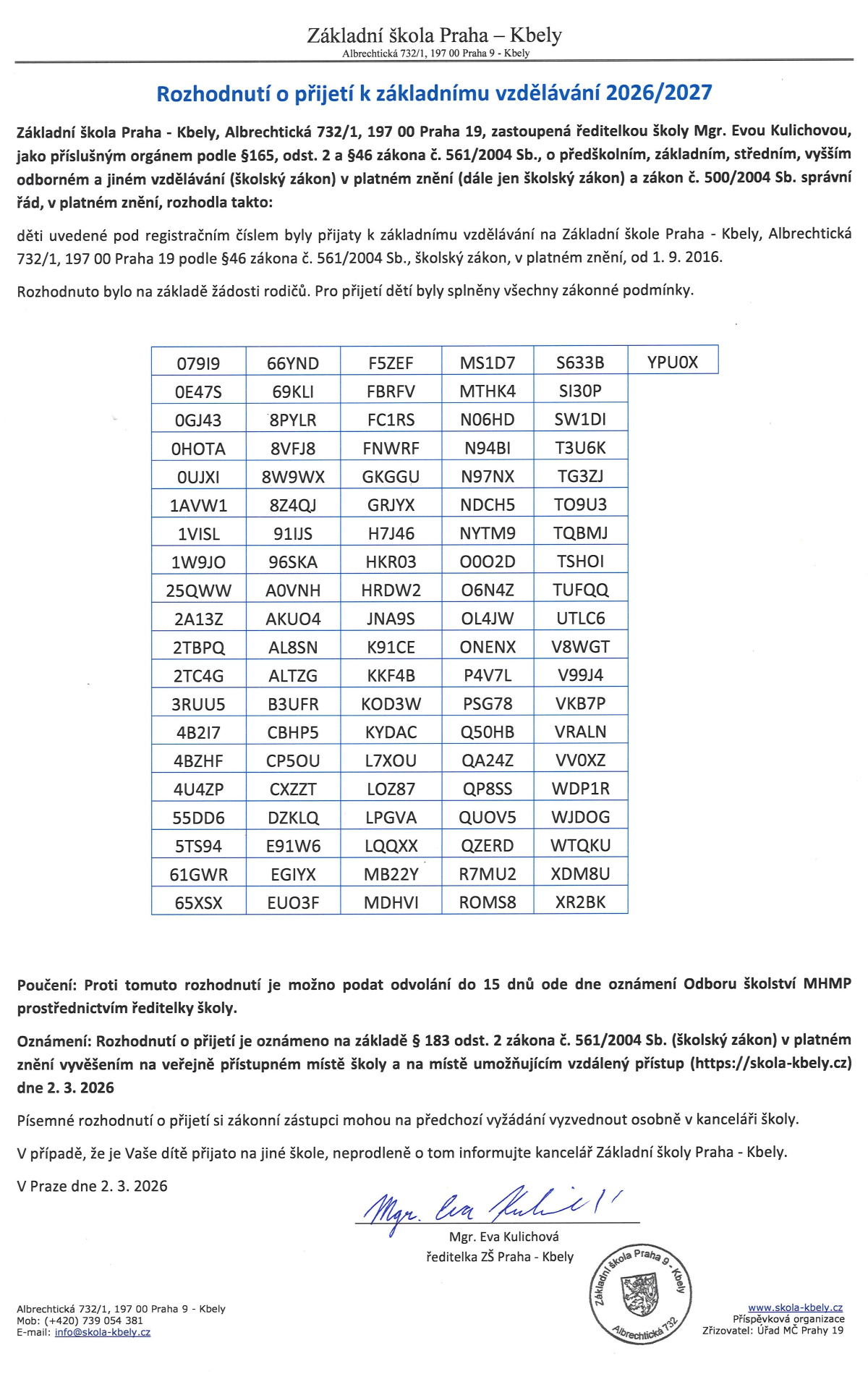 Rozhodnutí o přijetí k základnímu vzdělávání 2026/2027