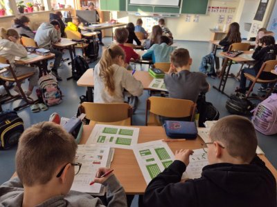 Matematicko-logická soutěž. Soustředění jelo na plné obrátky, často se hlava zavařila, ale nakonec práci odevzdali všichni. :-) Nejúspěšnější byli Ondra, David, Lexa, Sofie a Terka K.