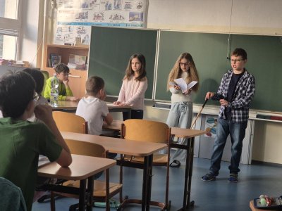 Žák za učitele, učitel za žáka. To byl prvních z šílených dnů, které si děti na škole odsouhlasily. Žáci se mohli obléknout za učitele a naopak, nebo si ve třídách mohli prohodit role. To se stalo i u nás ve třídě, kdy si dobrovolníci připravili pro ostatní hodinu a také ji odučili. Děti učily český jazyk, matematiku, informatiku, angličtinu a vlastivědu.