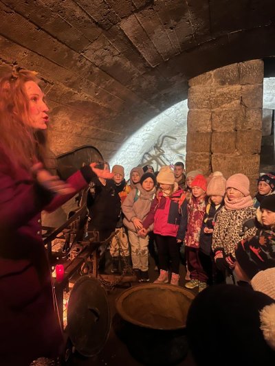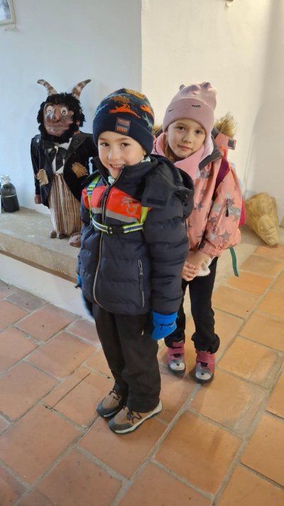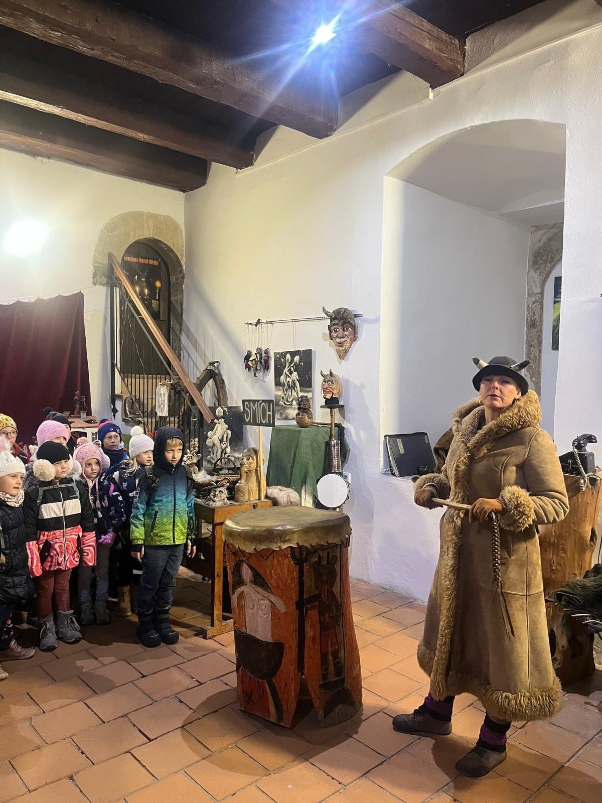 V úterý navštívili naši prvňáčci Muzeum čertů v Úštěku, kde je celou expozicí provázel sám čert. Děti se dozvěděly mnoho zajímavostí o historii čertovského řemesla, prohlédly si různé pekelné předměty a zjistily, proč mají čerti ocasy.