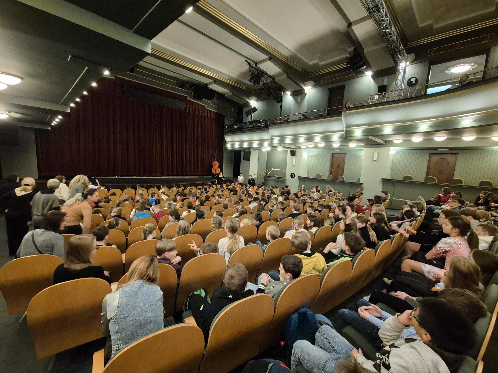 V pondělí 30. března navštívily všechny třídy 4. a 5. ročníku divadelní představení Gulliverovy cesty v Divadle ABC. Oproti předchozím návštěvám menších divadel děti zažily a poznaly, jak to chodí ve velkém divadle. Velké pódium, mnoho kulis, více herců a také více diváků nebo mnoho uvaděček a šatnářek, gongy a přestávka při představení, opona - to vše patří k provozu klasického divadla.