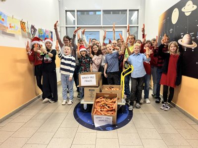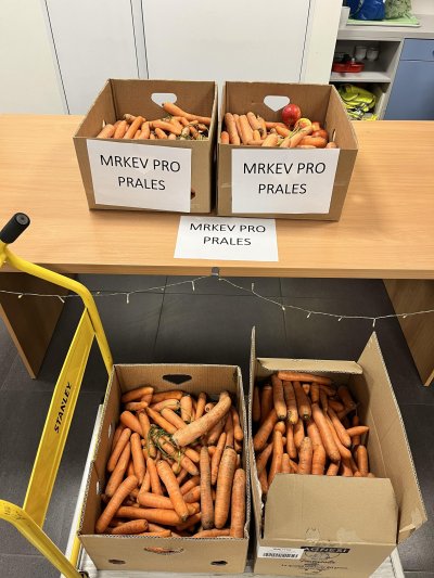 V pátek 19. 12. se naše škola opět ukázala jako místo s obrovským srdcem. Proběhla totiž sbírka Mrkev pro Prales, která byla úspěšná. Vybralo se totiž velké množství mrkve a školní jídelna navíc přidala i porci jablek, která zbyla po pátečním obědě. Zaměstnanci pralesa byli nadšení a věříme, že i zvířátka si svou vánoční nadílku užila. A kdo ví, možná stále užívají. :-)