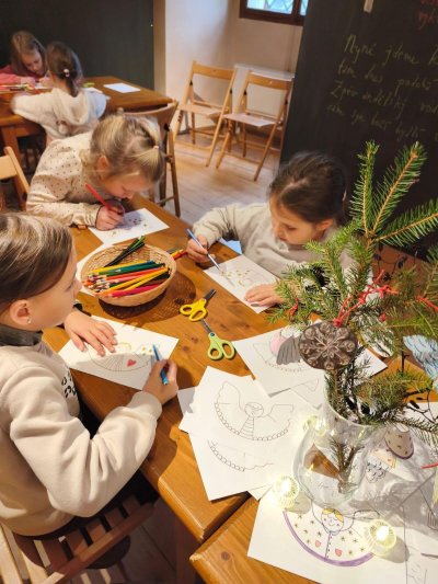 Třída 1. C si užila vánoční výstavu na ctěnickém zámku, kde byly k dispozici pro děti i tvořivé dílničky. A protože to byly radovánky v době, kdy byl sníh, užili si prvňáčci také psaní do sněhu i andílky. Jsou to prostě andílci!