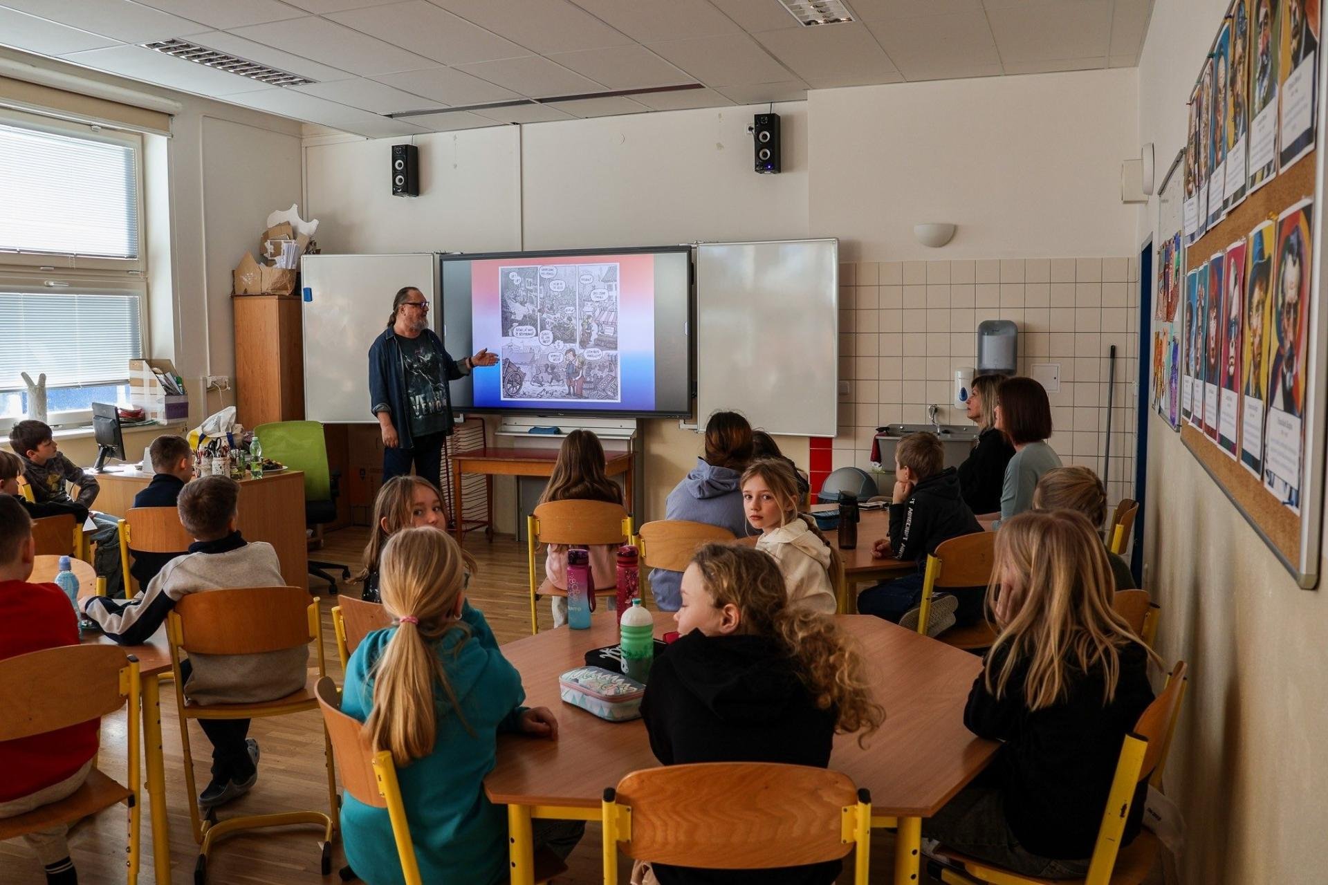Březnový projektový den byl tradičně věnován dni a noci s Andersenem. Některé třídy zažily přednášky od spisovatelů, jiné připravovaly divadlo pro druhé třídy a některé z nich měly i večerní program. Našly se i třídy, které přespaly ve škole.